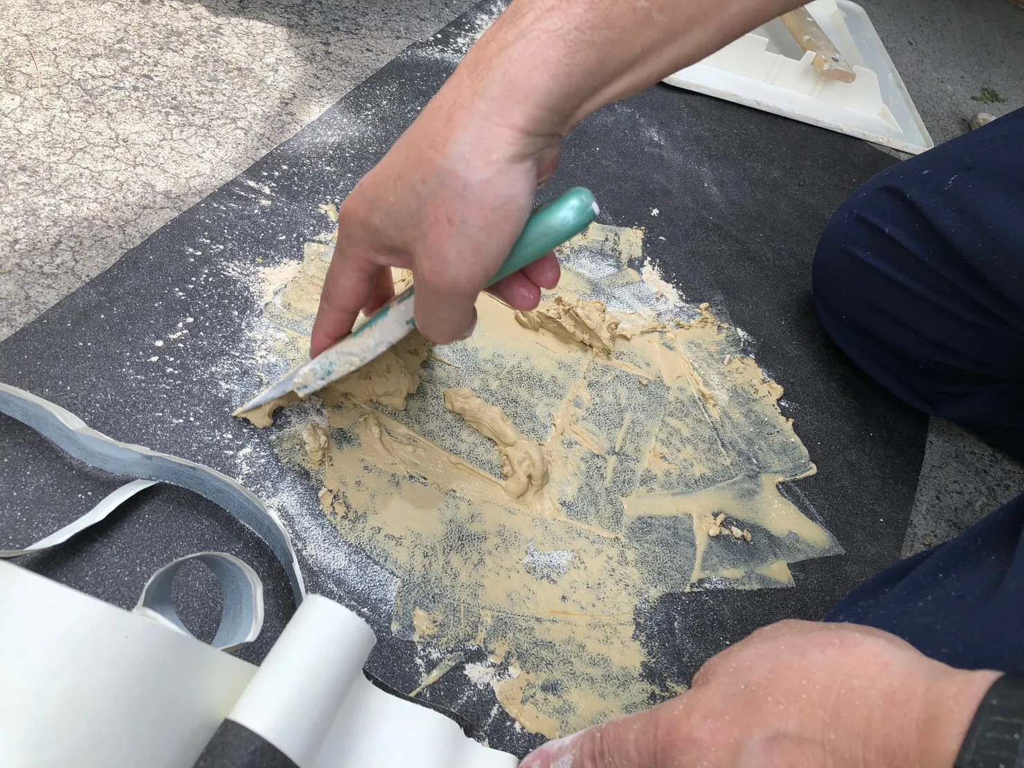 久喜市 A様邸 内装クロス(トイレ)交換工事 2025/09/19 久喜市でのクロス工事(トイレ)の様子をご紹介します。 とても落ち着いた空間に生まれ変わりました! Before After 《作業過程》 壁紙 糊付け作業 糊付けされた壁紙 壁紙 貼付作業 下地がいたんでいる場所は、パテで補修 《使用壁紙》サンゲツ ブラウンブラック(天井) ブルーグレー(側面)