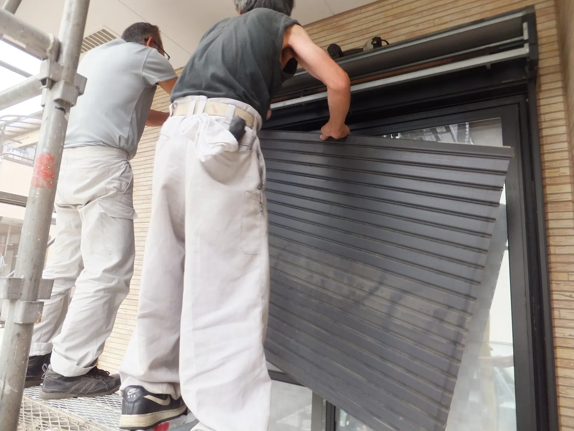 北葛飾郡杉戸町 S様邸 シャッター交換工事 2025/09/19 北葛飾郡杉戸町のお宅でのシャッター交換(シャッター4か所のパーツ交換)の様子を ご紹介します。 《施工過程》 〈既存スラット撤去〉 蛇腹部分(=スラット)を横にスライドし 解体・撤去 --- --- 上部のビスを外しスラットすべてを撤去 既存シャフト(スラットを巻き付けるバネ)撤去 新規シャフト取付け 新規スラット取付け 新規座板(スラットの先端箇所で持ち手と なる部分)取付け 新規ガイドレールを取り外した既存と同じ形状に現場で加工 右ガイドレール取付け 左ガイドレールビス打ち 左右ガイドレール取付け完了 既存シャッターボックス上部取付け